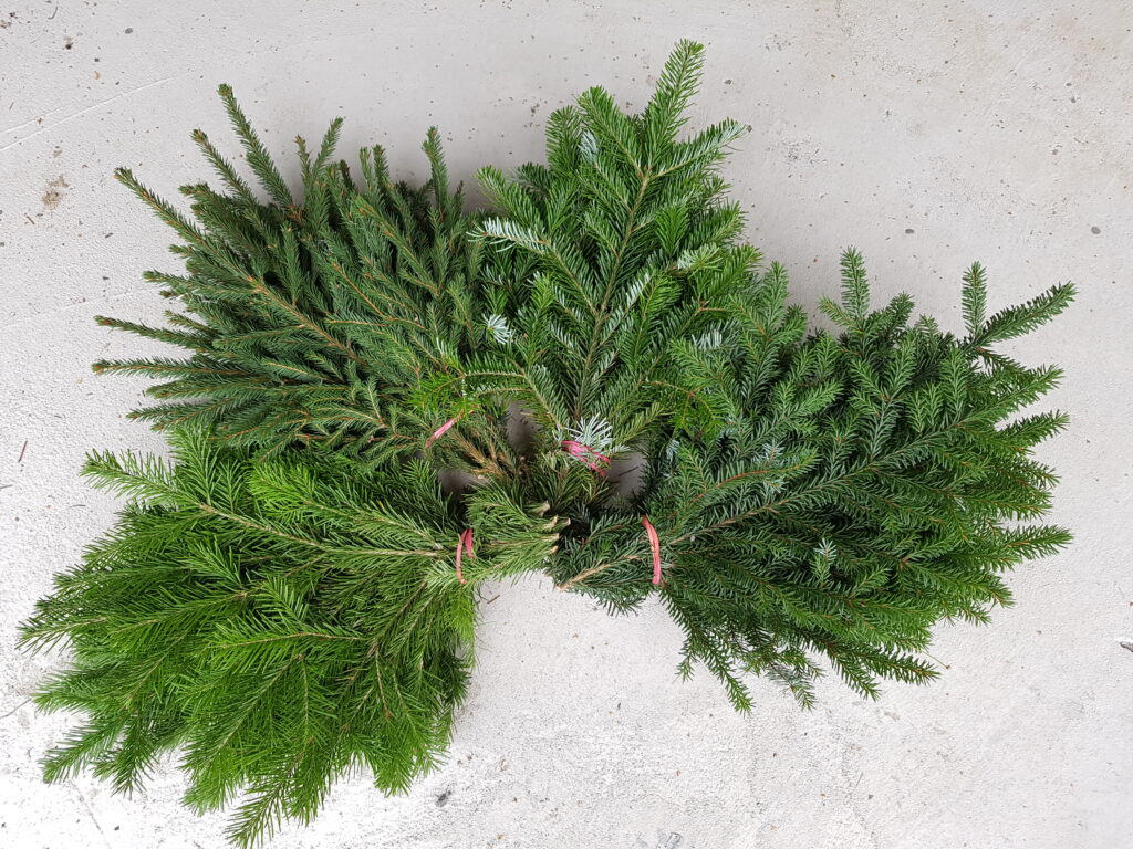Toimituksia ympäri vuoden, alkukesästä kasvaimet pehmeitä ja vaaleita, mikä voi rajoittaa käyttöä. Tarkista saatavuus ja tilaa hyvissä ajoin. Havujen pakkauskoot ja oksanpituudet voidaan neuvotella.